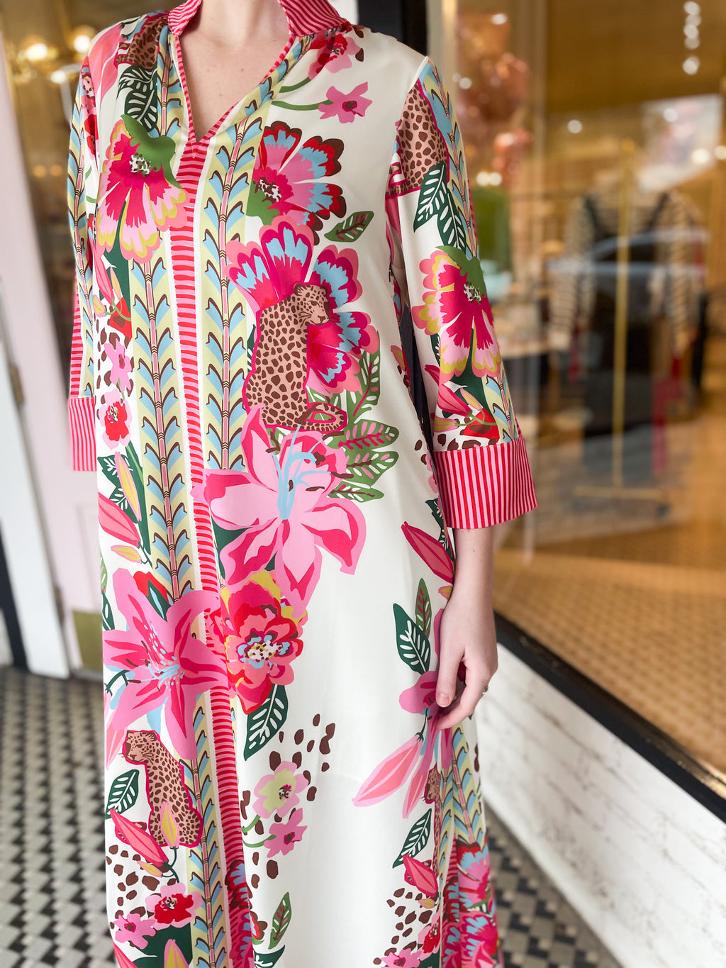 3/4 Sleeve Tie Neck Blouse - Pink Opal
