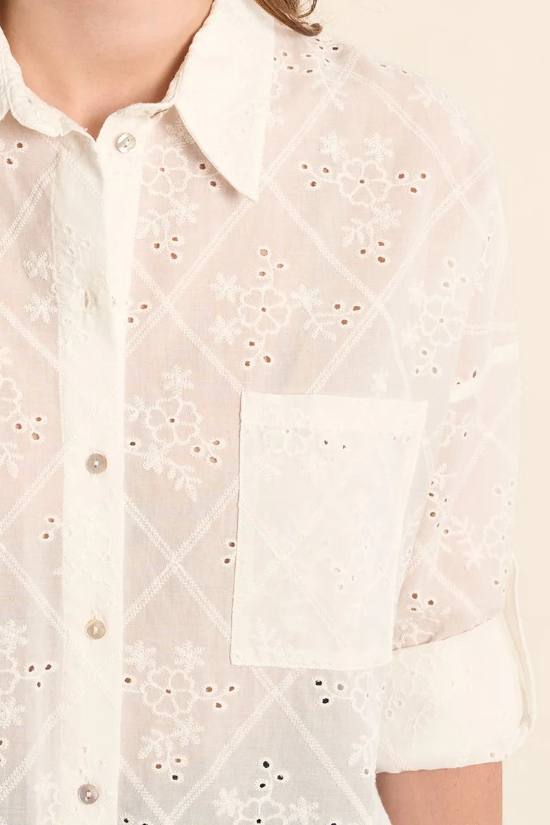 -Cotton shirt, broderie anglaise