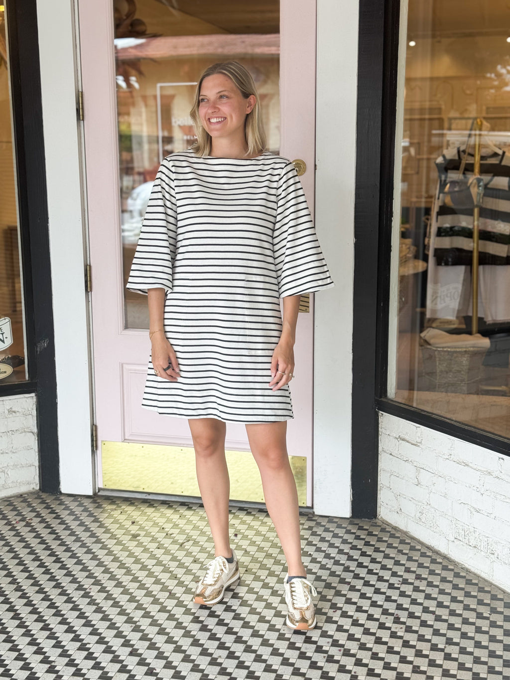 Striped Boat Neck Dress | Black + Ivory