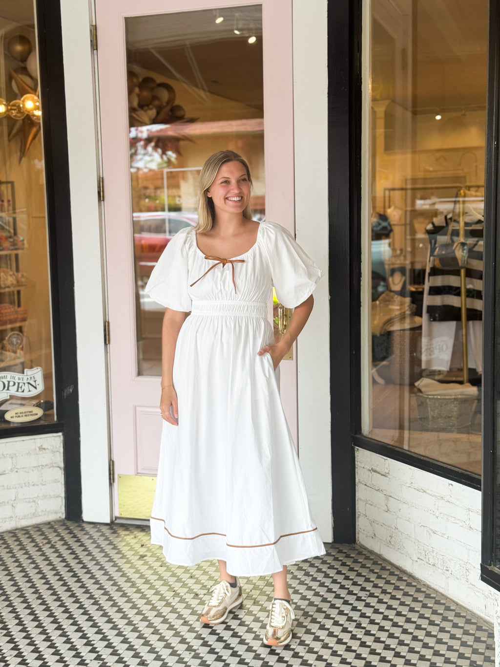 Camel Piping Midi Dress