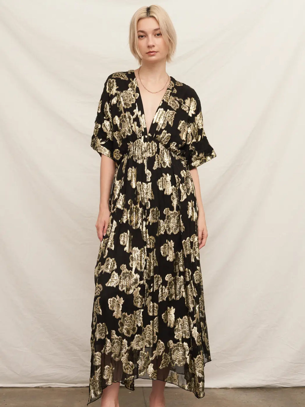 Kimono Sleeve Maxi Dress | Gold + Black