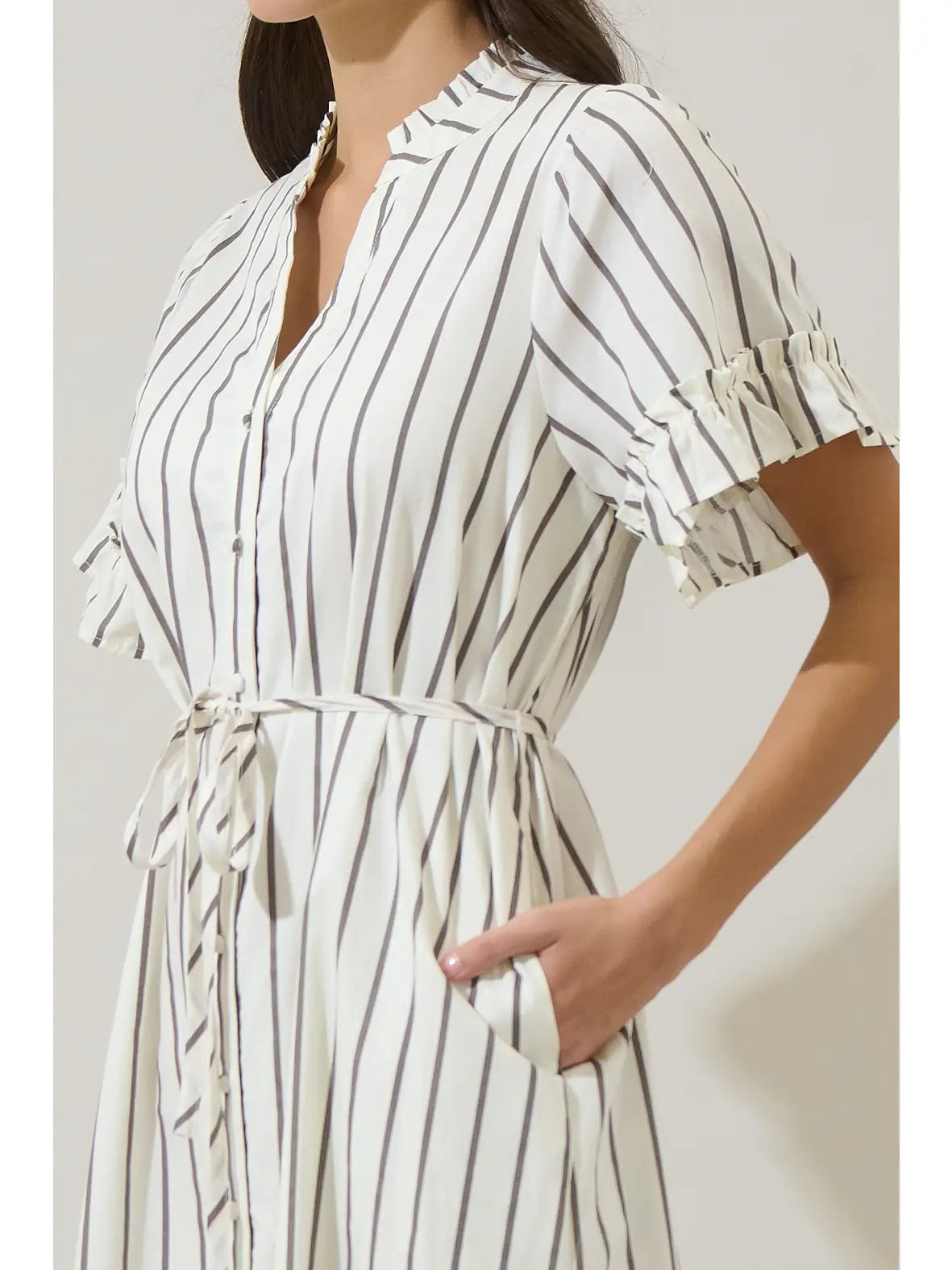 -Pockets - Midi - Striped - Ruffle short sleeves -