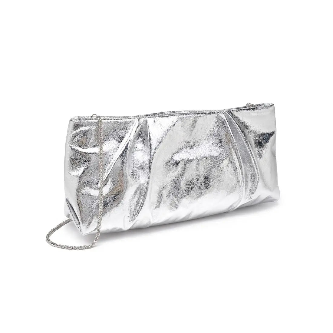 Experience timeless elegance with the Franny Clutch, a versatile accessory designed for the modern woman. Its sleek silhouette and textured detailing provide a chic statement, perfect for evening outings or a day at the office. Crafted with ethically sourced materials, this clutch embodies a commitment to style and sustainability. The delicate chain strap adds a touch of sophistication, effortlessly transitioning from hand-held to shoulder style. Ample space for essentials means you can carry what you need without compromising on aesthetics. Elevate your ensemble with the Franny Clutch, a must-have for the fashion-forward wardrobe. *Item Type: Clutch *Material: Vegan Leather *Closure: Snap Frame *Exterior Details: Gold Hardware, Detachable Chain Strap, Pleated Design *Interior Details: Fabric Lined, 1 Zip Pocket