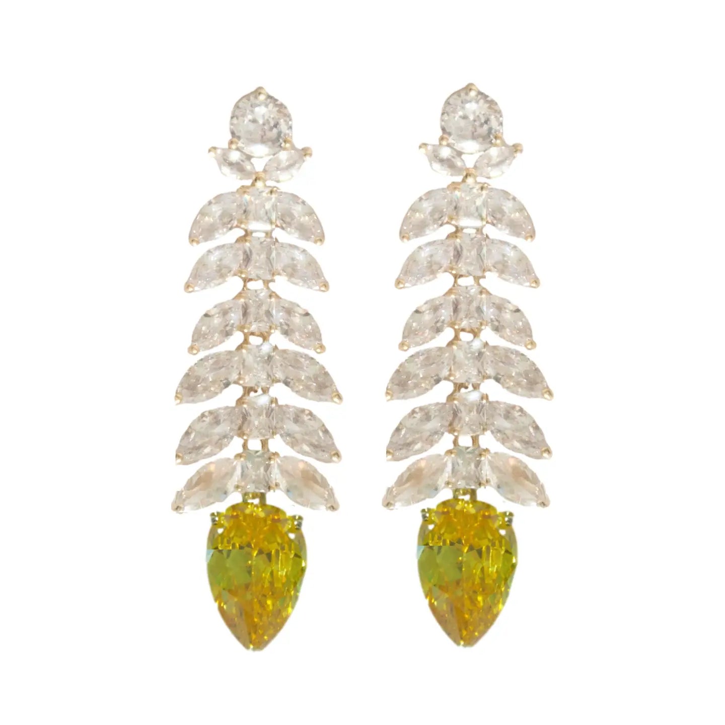 These Christmas and holiday statement earrings feature sparkling white crystals paired with a brilliant canary yellow teardrop for a festive, eye-catching finish. With a 2" length and elegant marquise cluster design, they’re perfect for adding a cheerful pop of color to holiday gatherings and New Year’s celebrations.